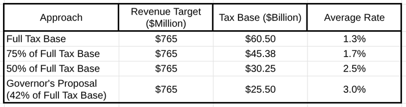According to the latest BEA figures, roughly $9.6 billion (or 15%) of Alaska’s current GDP is from “Mining, quarrying, and oil and gas extraction.” However, only a small portion of that is consumed in the state and is therefore currently subject to the proposed tax. Assuming including the portion exported would add approximately $8.5 billion to the base, the rate could be lowered to 2.25% and still raise the same amount of revenue.