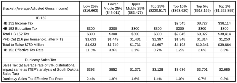 But that approach is not on this Legislature’s table. On the table are HB 152 and the Governor’s proposed mechanism. Any comparison of the two should be done on an apples-to-apples basis. When it is, the Governor’s approach yields a much better result for middle- and lower-income households, in other words, the vast preponderance of Alaska households.