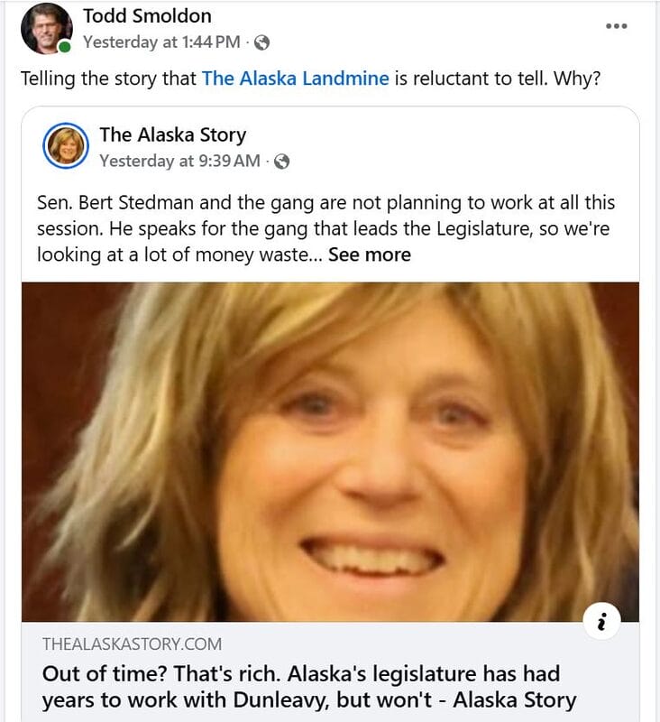 A friendly message and reminder to all our readers. The Landmine is made possible by myself and a team of awesome Alaskans. I have been covering the legislative session in Juneau for the last seven years and will be heading back for my eighth session in January. If you enjoy the content we provide, please consider making a one time or recurring monthly donation. You can click here to donate. We have a system that makes it super easy. We would really appreciate it. And thanks to everyone who has been supportive.
