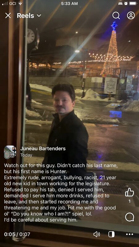The next day a staffer friend texted me this post from a closed Facebook group “Juneau Bartenders.” I explained to her I had a front row seat the the madness. The post is 100% accurate.