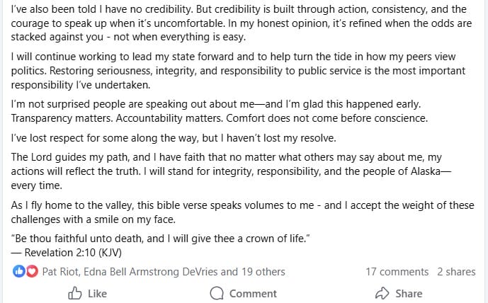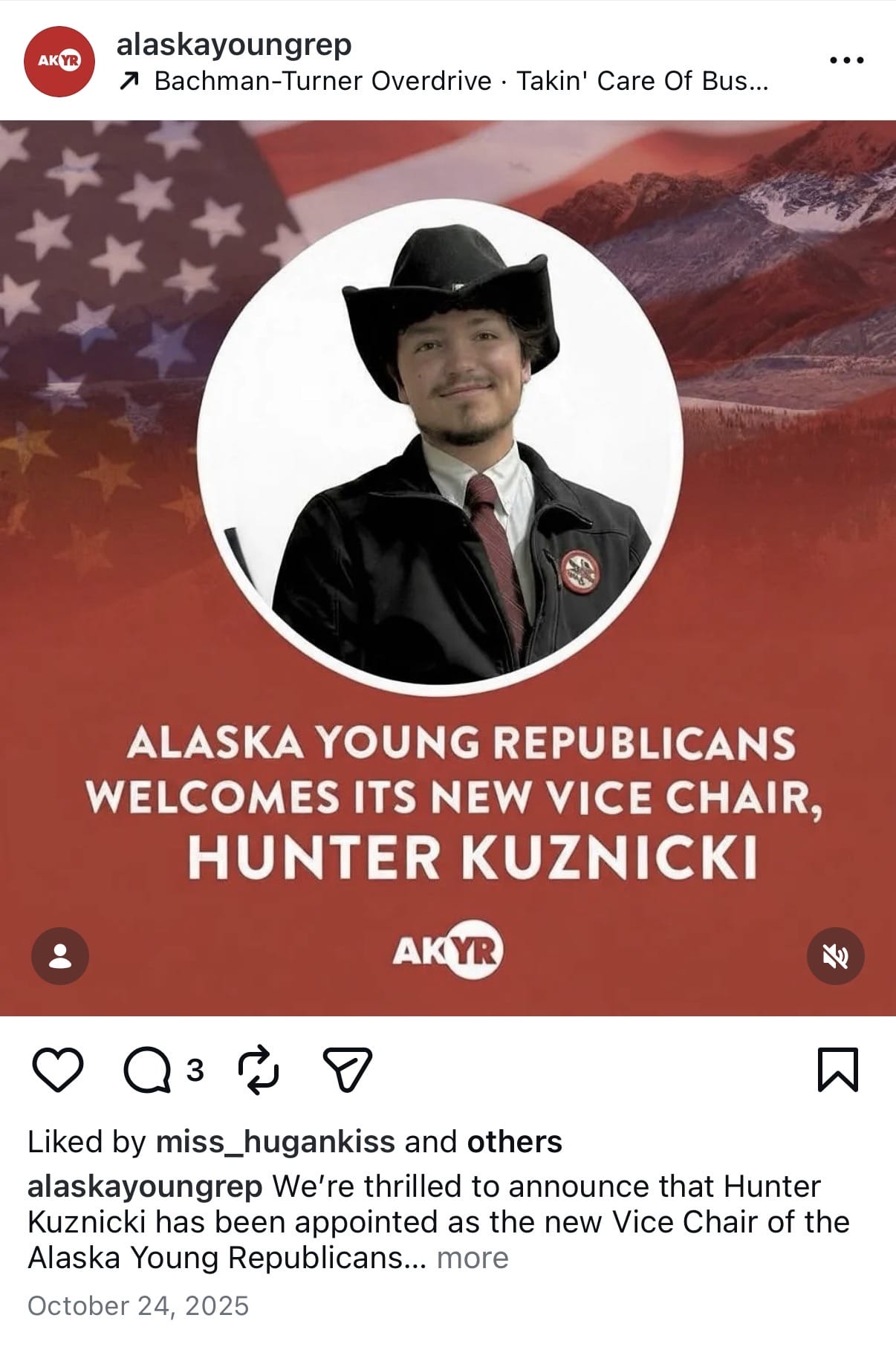 Hunter’s future status as vice-chair of the Alaska Young Republicans is unknown. But more importantly, the fate of HB 249 may be in jeopardy. The bill hearing today was canceled.